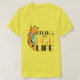 Design engraçada com uma girafa e uma citação dizendo VIVENDO A ALTA VIDA.