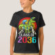 Um belo primeiro dia de escola de jardim de infância, pré-k, design Retro Vintage pré-escolar com um Dinossauro que diz "Classe de 2036" para futuro filho formando, sobrinho, neto, de volta à escola, dia de graduação ou qualquer evento escolar.