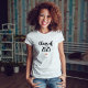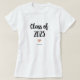 Esta camisa branca e negra apresenta a moderna tipografia da escrita que diz "classe de 2023". Há também um coraçãozinho elegante com um olhar falho de ouro rosa.