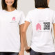 A unique cleaning pink logo and QR Code business t-shirt. A perfect modern style design for professional cleaning themed business branding. This elegant business t-shirt is ideal for cleaning services, housekeeping, janitorial, maids, decluttering service and commercial cleaning services. A simple and professional way to promote your cleaning business. Personalize your details to create your own unique house cleaning service business t-shirt. Use this pink logo or replace with your own! Ideal for staff employee uniforms!