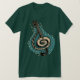 Guitarra baixa de Comix, dada forma como um clef de triplo, cercado por notas musicais, em uma pera-forma azul esverdeado. Cubra o desenho com cor digital, t-shirt, sue, cartões, canecas, presentes.