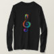 Chave musical desenhada a partir de camadas multicoloridas de cores do arco-íris sobre fundo branco.