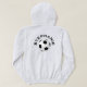 Esta camiseta de capuz de cinza acolchoada, aconchegante, com letras negras é perfeita para um jogador de futebol, clube ou equipe. Frente inclui 3 linhas de texto personalizado mais 3 bolas de futebol. Lá atrás tem nome personalizado de jogador e bola de futebol grande. Todos os gráficos de esfera de texto e futebol podem ser modificados, substituídos ou excluídos. O capuz é impresso na frente e atrás, cinzas leves com tipografia preta. Dimensionamento unisex; leggings correspondentes. Boa qualidade, grossa e quente. Fácil de transferir para outro produto, se desejado. Todos os Direitos Reservados © 2019 Alan & Marcia Socolik.