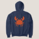 A vibrant, graphic representation of a crab, capturing its iconic silhouette with a confident, simplified style. The bright tangerine orange hue creates immediate visual impact. This vector-style illustration is perfect for projects requiring a fun, bold, and easily scalable image, such as packaging design, summer apparel, or beach-themed branding.
