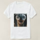 "Uma imagem impressionante e detalhada de uma cobra em espiral envolve o centro da camiseta, com suas escalas meticulosamente ilustradas em tons de verde, ouro e preto. Os olhos da cobra brilham com uma intensidade hipnótica, e a língua treme num movimento sutil mas cativante. A intrincada design inclui texturas sutis que destacam as curvas naturais do corpo da cobra, e sua cabeça emerge com uma postura feroz mas elegante. Esta design exumenta tanto o mistério quanto a força, fazer que seja uma escolha perfeita para aqueles que apreciam a vida selvagem ou que querem fazer uma declaração ousada de moda."