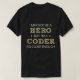 Eu posso não ser um herói, mas sou um Coder tão perto que uma arte humorística em sans-serif e rabiscos com letras cruzadas em branco e ouro amarelo.