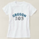 O design de tipografia apresenta "Oregon" em texto curvo com prefixo de código de área - personalize sua área favorita do estado ou deixe como está. O 503 é atualmente o código de área para a área metropolitana de Portland.