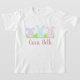 Esta camisa adorável pode ser personalizada com o nome do seu filho. Apresenta um trio de coelhos pastéis e aquosos com rabos fofinhos e fofinhos sentados na grama. Este design funciona melhor com camisa branca ou impressão vívida.