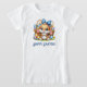 Desenho adorável de um coelho macio, castanho e branco da Páscoa, com orelhas sonolentas e um arco azul no cabelo, rodeado de ovos coloridos e decorados. Felz pascoa é escrito em tons de diversão sob a ilustração. Esta camisa fofa está disponível em muitos tamanhos.