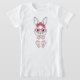 Coelhinho branco de desenho animado com fones de ouvido cor-de-rosa, aro de cabelo e óculos cor-de-rosa grandes com patas bonitas