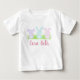 Esta camiseta adorável pode ser personalizada com o nome da sua criança. Apresenta um trio de coelhos pastéis em aquarela com caudas fofas e fofinhas sentados na grama. Este design funciona melhor com uma camiseta branca ou impressão vívida.