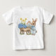 Apresentamos nossa camiseta de bebê Coelho Personalizado com Flores Azuis! Com um coelhinho segurando flores silvestres azuis, um carrinho de madeira com muitas flores silvestres azuis e uma casinha ao fundo, esta camiseta de bebê traz charme e diversão para qualquer celebração!