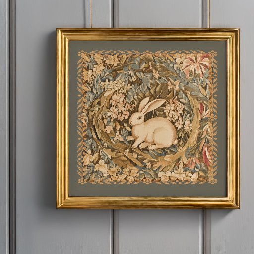 Coelho vintage doce num estilo de tapeçaria medieval.