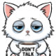 Messy-furred chibi cat holding a coffee mug that says “Don’t talk to me.” Morning mood in cat form!