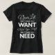 Camiseta Coisas que você quer versus precisa de uma camiset