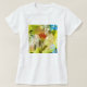 Colagem criativa de elementos florais e gráficos em amarelo, vermelho e azul.