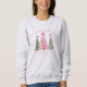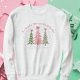 Esta design de camiseta encantadora apresenta três árvores de natal colorido-d-água em tons de rosa e verde macios, cada uma enfeitiçada com fitas elegantes, perfeita para um visual de feriado caprichoso.