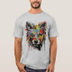 A vivid wolf head painted in blues, pinks, and greens. Sharp graphic lines and layered textures evoke raw power and modern artistic energy.