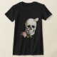 Um crânio, com uma rosa entre os dentes e uma borboleta, deitado sobre um fundo de um depoimento manuscrito dos julgamentos da Bruxa de Salem. © Wickely Lovely
