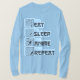 Engraçado anime design mostrando ilustrações de traçado no estilo de manga e a legenda "coma anime de sono repete" em inglês e japonês.