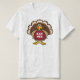 Os desenhos animados patetas do peru com o sorriso mau, vestindo-se "comem-me" t-shirt. Camisa cómico da "atitude" para a acção de graças.