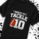 Esta design de aniversário de futebol é perfeita para uma festa de aniversário de tema de futebol de 10 anos para comemorar ter 10 anos! É também excelente para uma festa de 10 anos de aniversário de casamento para casais que celebram juntos o 10.º aniversário. Apresenta a citação "Pronto para lidar com 10" com o gráfico de futebol. Perfeito para quem ama futebol!