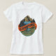 Um design de tipografia no estilo do crachá retrô legal, que diz: "A aventura do acampamento de verão começa".