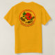 Camiseta com o logotipo de tartaruga frontal pequena e o logo de tartaruga traseira grande com o slogan, "comece devagar e afaste-se!"