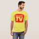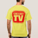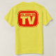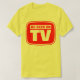 "COMO VISTO NA TV", uma variação de design no estilo na moda retro sobre esse tema popular. Com duas letras em tons e uma tela ao redor, realmente faz com que esta design olhe a peça. O motivo também aparece no verso, mas essa camisa pode ser personalizada para suas preferências, quase tão boa quanto o controle remoto :)