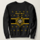Camisola preta com design de círculos concêntricos de ouro, preto e branco, acima de um retângulo preto e ouro com "COLUMBIA, MISSOURI CENTER OF THE UNIIVERSE", com o Excelente Seal do Missouri no centro e com os logotipos Y-NOT-ME ao fundo. Esta design é um grito para Columbia, Missouri, uma cidade em movimento.