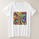 Um abstrato vibrante em tons de azul, roxo, vermelho, coral, amarelo, ouro, verde e muito mais! Esta camisa está disponível em vários estilos e cores.