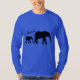 TShirt por muito tempo sleeved, dos azuis marinhos, com a fita do pai do elefante e das silhuetas e da Síndrome de Down do bebê. A escrita diz, "amor."