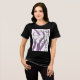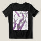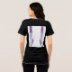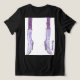 Fria, ousada e tenda Fita de Consciência Roxa da frente da fita roxa da camiseta com óculos, corta-gargalo de ouro e grandes brincos de ouro. A parte de trás da camiseta tem botas de lavanda compridas. Significados de fita roxa: Alzheimer, Lupus, sobrevivente de câncer, ou usado da Sociedade Americana de Canceres, Doença de Hodgkin, cancer testicular, e muito mais.