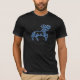 Tee com o símbolo do zodíaco para Aries em azul-prata-suave, sobreposto com as estrelas da constelação, contra fundo de céu estrelado