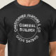 T-shirt comercial do General Builder. Nome comercial e número de telefone em uma camiseta.