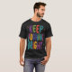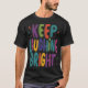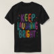 A design da t-shirt "Keep Laughing Bright" apresenta o texto numa fonte divertida e multicolorida. Cada letra se rompe com uma cor vibrante, parecendo uma celebração alegre. Essa design é perfeita para quem quer espalhar positividade e riso com um toque de talento artístico.