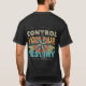 Um design de t-shirt dinâmico com a frase "Control Your Destiny" numa fonte vibrante e multicolor. Formas de abstrato e linhas em torno do texto simbolizam o poder da escolha e a determinação de moldar o seu próprio caminho.