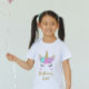 Camisa-T-Convidado de Honra de Aniversário do Unicórn com nome personalizado no verso