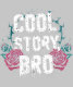 Um impressão de arte ousado e ousado que apresenta a frase popular 'História Legal, Bro' em um estilo amontoado, cercado por intrincados rosas e espinhos. Perfeito para amantes de estética escura e de peças de declaração.