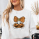 Esta camisola retrorinspirada combina conforto aconchegante com o charme do Dia das Bruxas. Apresentando abóboras de groovy no estilo de coquete, um arco do crânio e a frase festiva "Esta é a estação para ser assustada", é a pullover perfeita para vibes do outono e diversão da estação assustadora.
