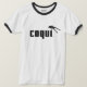 El Coquí saltarín. Una buena parodia de un famoso logo de compañia de ropa y equipo atletico. Uma colher de uma famosa logo!
