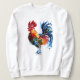 trabalho de arte de aquarela tradicional de um galo grande ou de frango macho com muitas penas coloridas em suas asas e cauda em uma camisola.