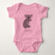 Bonita cor-de-rosa e cinza, ursinho de coala, roupas de bebê. Personalizável com o nome da criança. Vida selvagem australiana bonita/imagem animal de zoo com nome de bebê personalizável. Cor rosa pastel para bebê recém-nascido. Mude de cor para os rapazes. Ideia divertida de presente de chá de fraldas para netos.