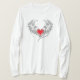 Coração vermelho pintado artificialmente com cinza de asas de anjo, decorado com contorno liso preto.