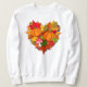 Camisa de outono espinhosa com coração brilhante criada por abóboras, folhas de outono, bolotas, bagas e um banquinho.