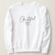 Atraia essa energia positiva com uma camisola de "gratidão" com um design personalizado único com "grata" em elegante roteiro manuscrito com um belo coração desenhado à mão e seu nome personalizado. Vários estilos e cores para escolher. Um presente de excelente para você e talvez para outra pessoa.