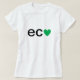 Camiseta Eco Coração Verde. Camisetas Verdes Femininas. Camisetas verdes femininas. Camisetas modernas verdes e brancas. Roupas esportivas ativas para mulheres. Ideal para amantes da natureza.