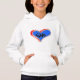 Este capuz bonitinho apresenta um design que diz AMOR com corações azuis e vermelhos no fundo cercado por estrelas.