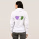 Hoodie com corações em cores da bandeira do orgulho do gênero, design do orgulho estranho sobre fundo roxo; corações verdes, brancos e roxos