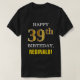 Estas características de design aniversário-temáticos, preto-coloridas simples da camisa um desejo morno do aniversário gostam "do 39th ANIVERSÁRIO FELIZ, REGINALD!" na parte dianteira, no texto corajoso. O número do aniversário tem o falso/imitação ouro-como a aparência da coloração. O nome na parte dianteira pode ser personalizado. Uma camisa aniversário-temático como esta poderia ser divertimento a vestir-se em uma festa de aniversário que está sendo guardarada para alguém que está comemorando seu nono aniversário trinta. [~Z0000318]